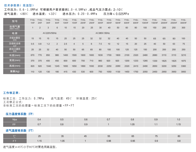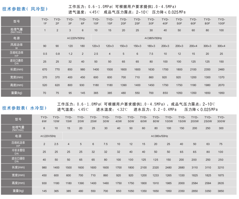 TYD冷凍式空氣干燥機